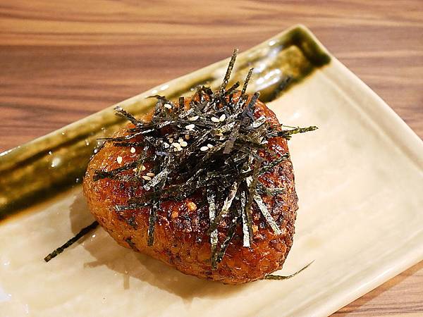 串燒野崎的烤飯糰即使放一下表面也不會太乾,外層的鍋巴不會太厚,酥脆口感超加分