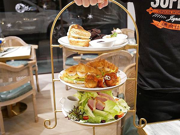 下午茶組共有三層,一層甜食兩層鹹食