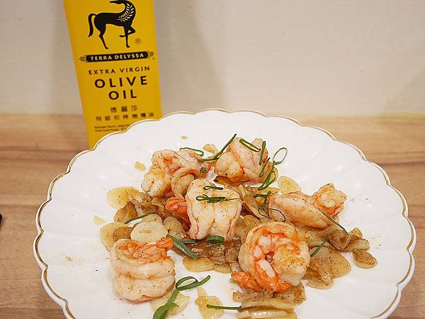 蒜片蝦需要準備橄欖油、新鮮蝦子、大蒜、青蔥/九層塔 等等
