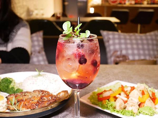 花花餐酒館的氣泡飲共有四款,每一款都超好喝,我們點了兩款跟大家分享,莓果口味酸酸甜甜的,入口能品嚐到相當清爽的莓果香氣,底部還有莓果籽以及莓果粒,是兼具口感和風味的一款飲品