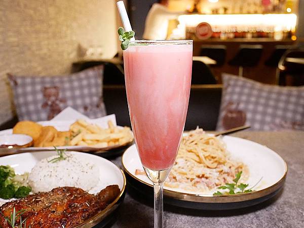 花花餐酒館的雞尾酒有一個特色,就是完全喝不出酒味!!!,有人肯定會問,沒有酒味還叫雞尾酒嗎? 這就是神奇的地方,因為酒精濃度一點也沒比較少,聽說上次有顧客覺得喝起來太像飲料,不相信有酒精含量,結果喝兩杯就倒了。這款粉紅公主派對超夢幻,老實說看起來就像是草莓牛奶的顏色,入口能品嘗到淡淡玫瑰香氣,口感濃郁有點像是可爾必思或是優格一般,微甜的滋味真的會瞬間讓人忘記這是一杯酒,太好喝又太順口,完全沒有任何酒勁,不跟我說這是雞尾酒的話,相信我也會喝倒,怕酒味的女孩們一定要試試這一杯,真的超好喝
