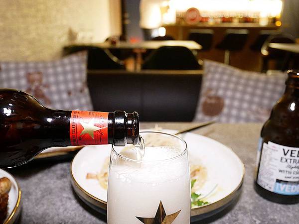 花花餐酒館的啤酒種類還不少,可以依照自己喜歡的風味請店員推薦,靜香個人喜歡果香濃郁且苦味值低一點的啤酒,所以店家推薦我們這兩款,每款啤酒都會額外附上一個適合品嚐該種啤酒的杯子。