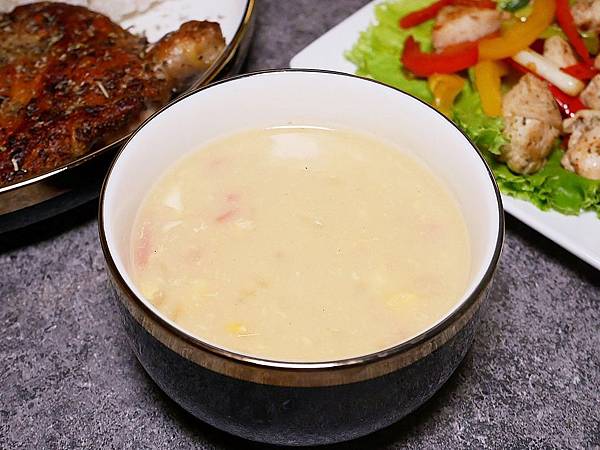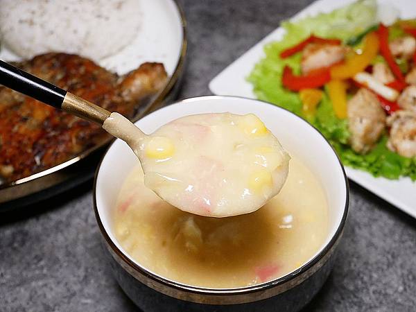 招牌濃湯料很多,濃郁但不會太稠,玉米、火腿的香氣充斥口中,餐前來一碗真的超舒服