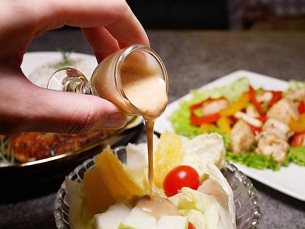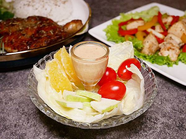 沙拉的配色相當豐富,包含芭樂、柳橙、番茄、生菜等等,食材都滿新鮮,而且分量相當剛好