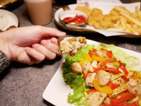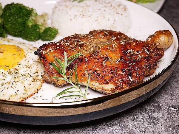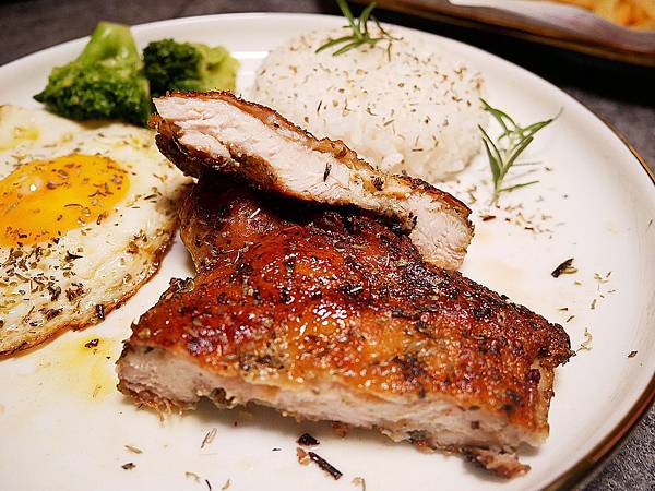 雞腿超大塊而且非常鮮嫩厚實,迷迭香的味道有醃入味,每一口都很夠味,雞肉雖然嫩但口感依舊有嚼勁,略帶點Q度不會鬆鬆的。