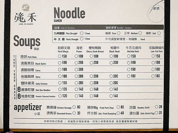 滝禾製麵所的餐點相當客製化,湯頭、主食、麵條全都可以自行挑選