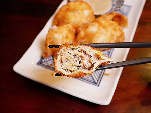 水餃的麵皮吃起來非常酥脆,雖然是炸物但不會太油膩,即使多放一下依舊卡滋卡滋