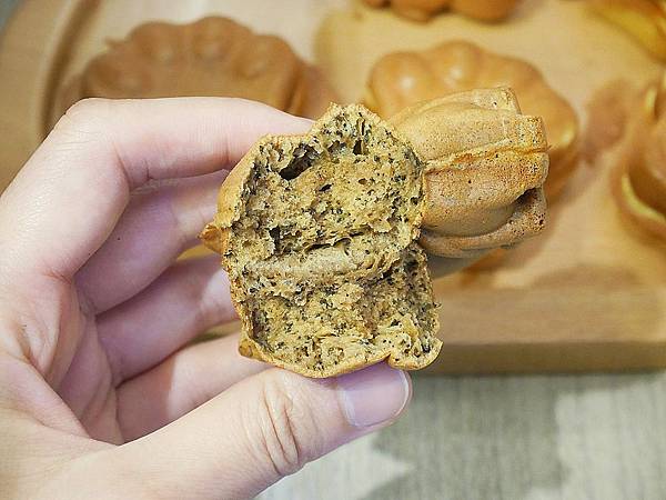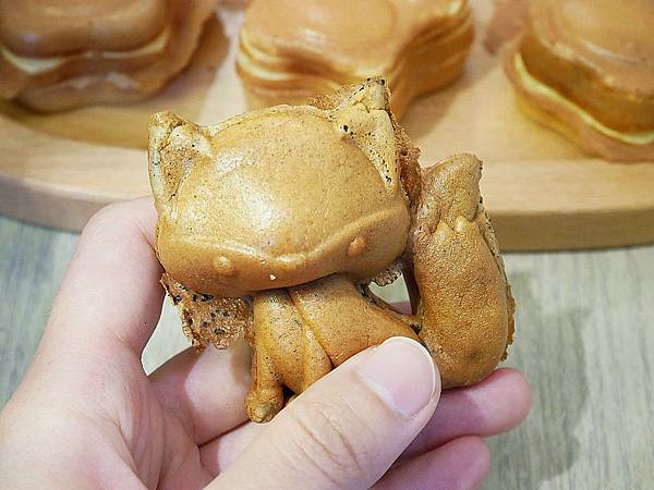 紅茶口味的雖然沒有包內餡,但粉漿內混入大量茶籽,風味很鮮明。小狐狸造型相當立體可愛,難怪不管是社團還是IG都被大大洗版。雞蛋糕在口中咀嚼香氣出色,裡面有伯爵和紅茶,入口是有層次的,當然要仔細品嘗才會發現。