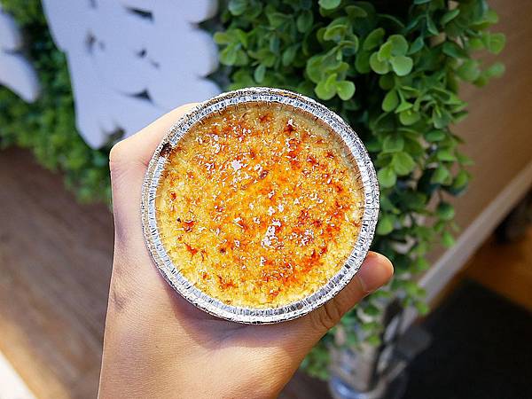 除了雞蛋糕之外,老闆特製的焦糖烤布蕾也別錯過。老闆說他們的布蕾是用全蛋黃和乳製品製作,所以跟平時吃到的布蕾很不同,口感跟奶酪一樣濃郁厚實,較不像一般似布丁那種