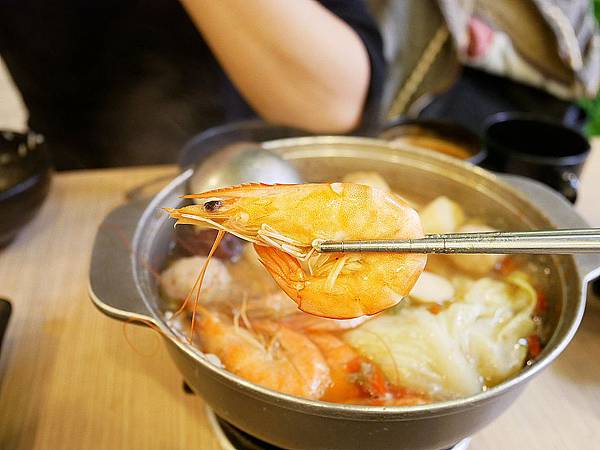 蝦子夠新鮮,煮完的殼很好剝,而且肉質挺細緻Q彈,不輸給高單價的火鍋店
