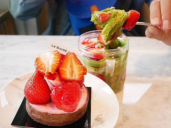 這款甜點很有層次,鮮紅的草莓和綠地般抹茶交疊而成,草莓鮮紅欲滴,而且相當濕潤,不過微偏酸小小可惜。