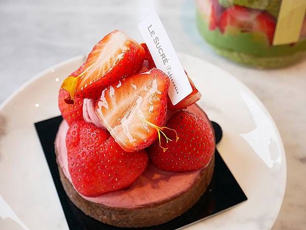 粉紅巧克力慕斯甜而不膩,切開塔皮中間還有奶酪內餡和草莓果醬,層層疊疊堆起,整體表現中規中矩,不算太讓我喜愛的草莓塔,但也不會太差