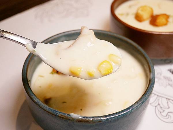 濃湯的料還不少,喝起來不會太稠,入口也不會過於厚重,是夠味又不失清爽的玉米蘑菇濃湯