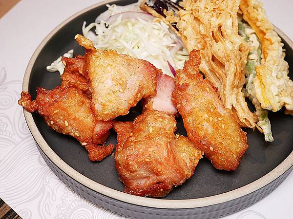 每份主食旁都會附蔬菜上天婦羅,炸物的麵衣不會太厚重,趁熱吃酥酥的還不賴