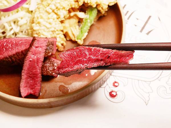 在口中咀嚼時能品嚐到滿滿牛肉鮮甜肉汁,而且口感不會太硬,是有嚼勁又好入口的