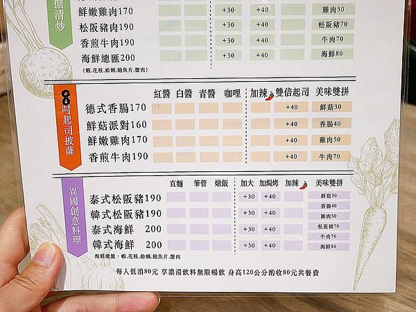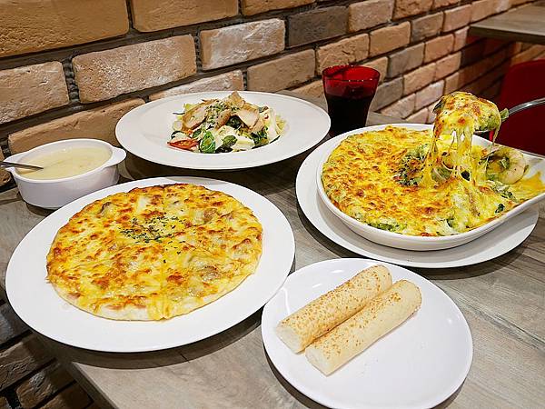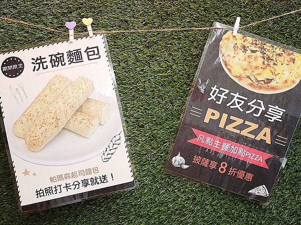 目前只要點主餐再點披薩還享有8折優惠,打卡分享再送洗碗麵包