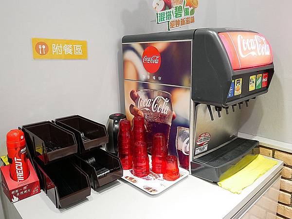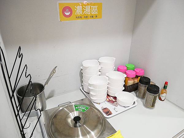 飲料、濃湯、醬料和餐具都讓顧客自行取用