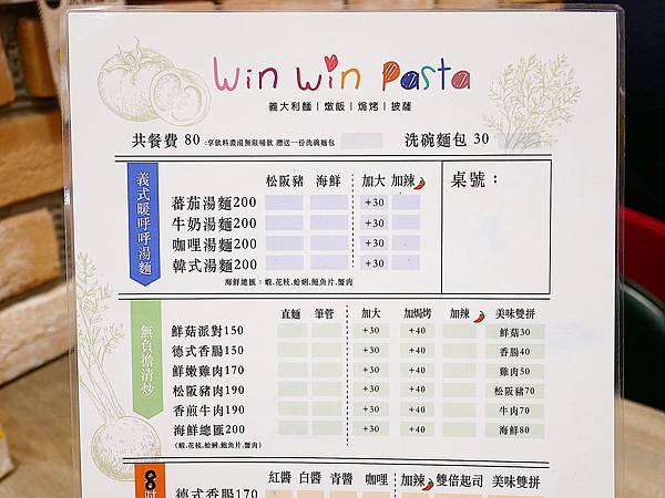 Win Win Pasta的價格還算平價,餐點選擇多又客製化,如果哪天想吃義大利麵、燉飯、披薩可以參考