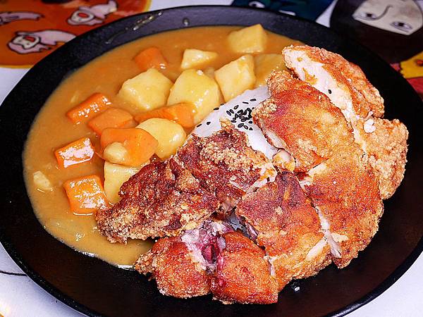 咖哩飯還不小分,雞滿挺大塊,旁邊還有滿滿紅蘿蔔和馬鈴薯