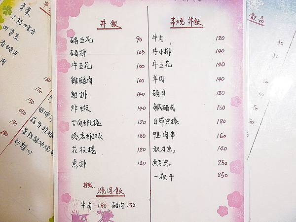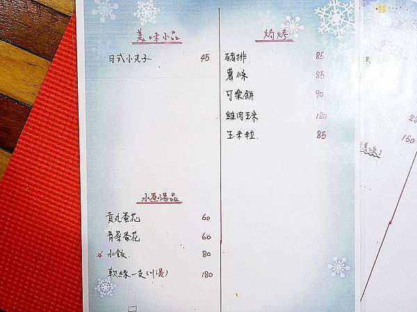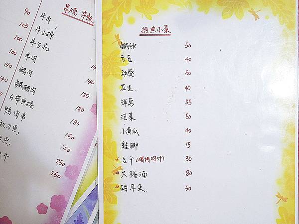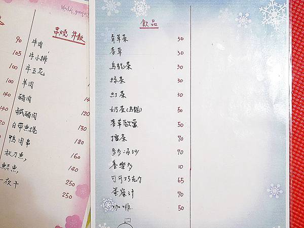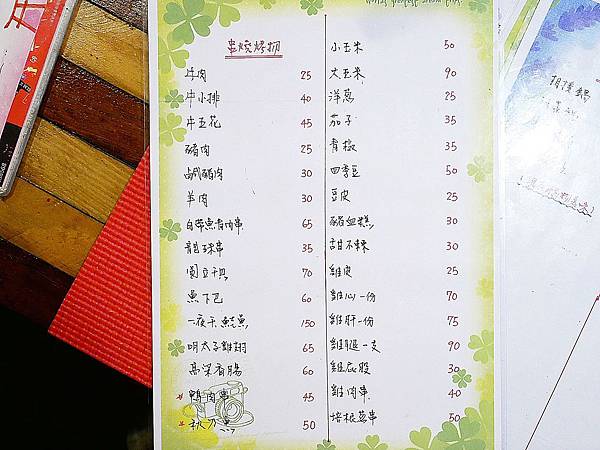牛小排串 $40 / 羊肉串 $30 / 牛五花串 $45 / 豬肉串 $25