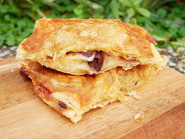 因為剛烤好,外層的可頌還稍稍偏軟,稍微放冷之後口感比較酥脆