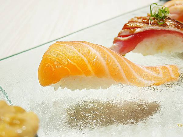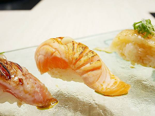 鮭魚吃起來就是比鮪魚多了油花的豐富感,但是微炙燒過所以是不敢吃太生的朋友可以品嚐看看