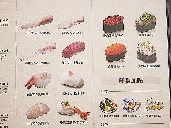 除了生魚片和炙燒系列之外,還有海苔、豆皮跟花壽司系列,都是10貫$130