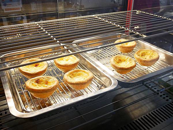 店家自己手工製作的蛋塔放在架子內,走過很難不留意到!