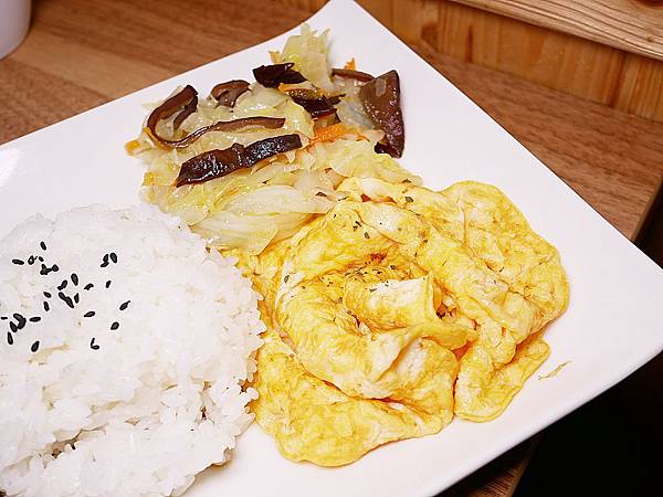 旁邊搭配和炒青菜,散蛋口感挺細緻,蛋香很濃郁,而高麗菜也滿濕潤,是最不敗的菜色