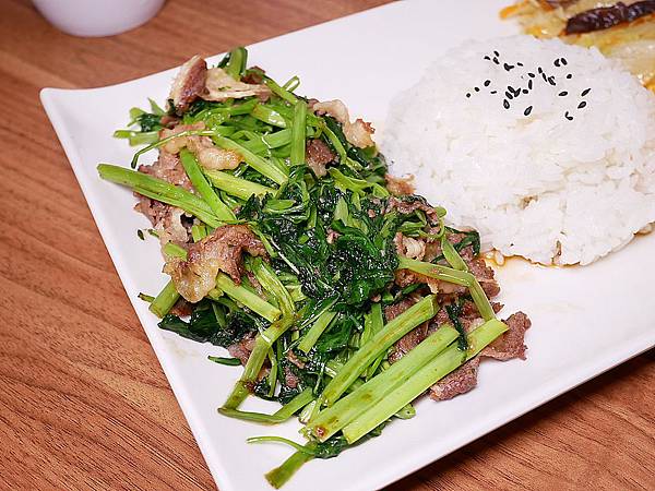片狀的雪花牛吃起來滿細緻,跟脆口的青菜搭配起來還滿涮嘴,很有中式熱炒的氛圍