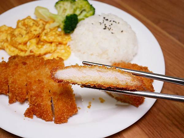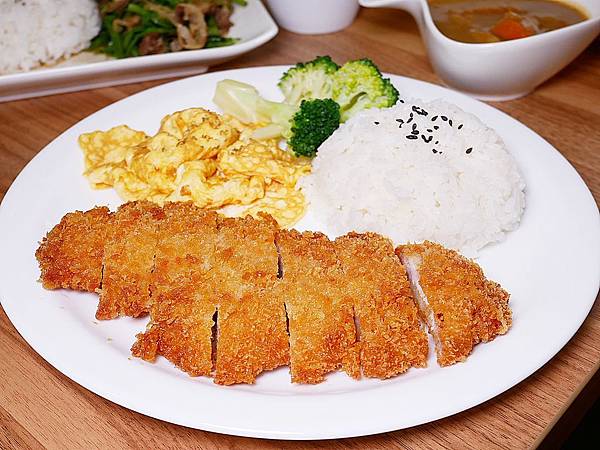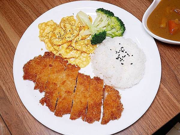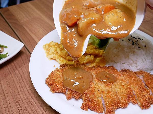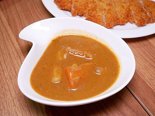 豬排還滿有厚度,麵衣酥脆不乾硬,肉的調味不過鹹,吃起來有咬勁但不會太硬,搭配咖哩醬更濕潤加分
