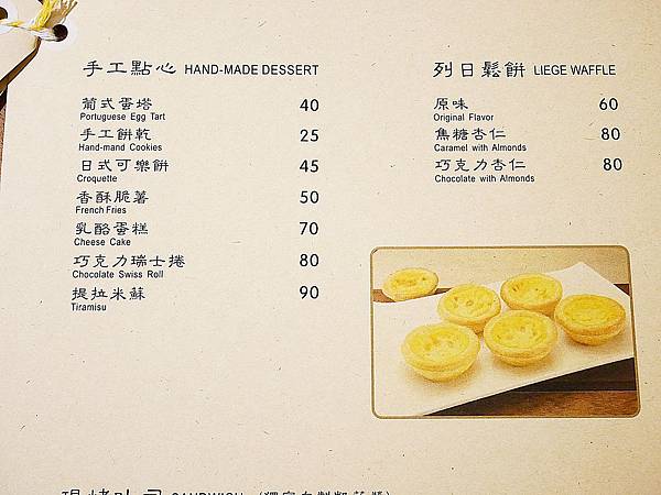 甜點很多都是店家手作的,其中蛋塔是最熱銷的品項,可以趁午茶時段來試試