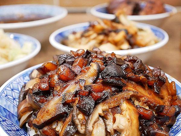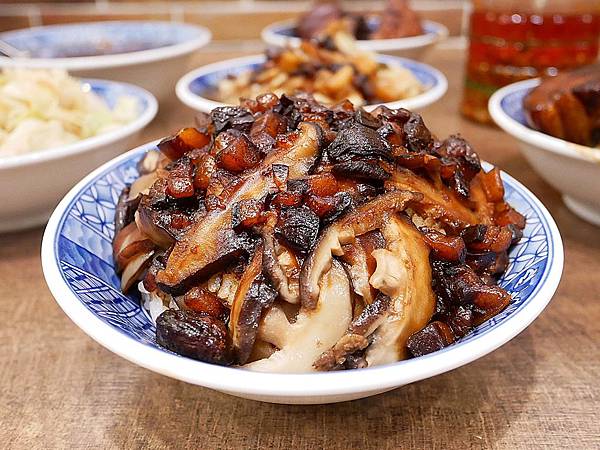 小王賣瓜的香菇魯肉飯上頭滿滿香菇塊和香菇片,份量堆疊起來有點霸氣