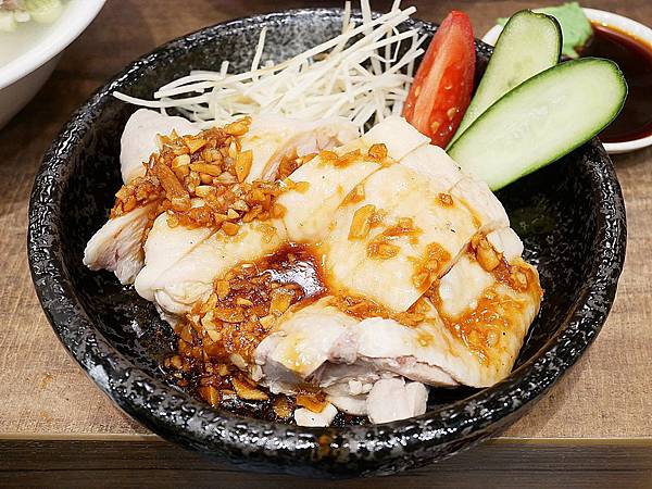 蒜頭碎拌入一點鹹香醬汁淋到雞肉上非常提味,這個也很值得點