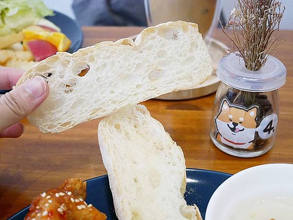 巧巴達麵包的口感酥脆,但咀嚼又不失Q彈,因為是乾麵包,滿推薦可以搭配濃湯一起品嚐