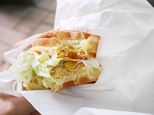 我個人很推薦鹹味的鬆餅和瓦芙,吃起來比甜味的更濕潤,可能是因為美奶滋比較不會被吸收掉