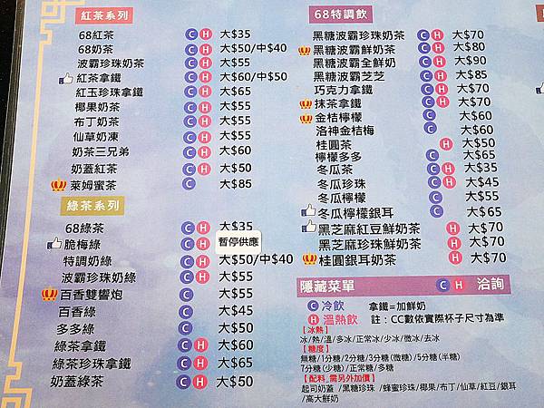 68茶堂的飲料我覺得都不錯,最喜歡洛神金桔梅,然後是抹茶拿鐵沙冰樂