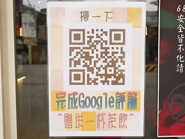 QRcode掃一下並完成google評論就可以得到一杯飲料