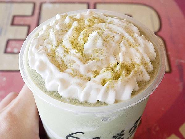 上頭的鮮奶油擠滿滿,一開始還擔心會太油膩,但跟冰沙搭配起來意外超加分