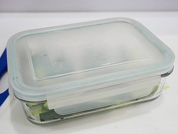 加入一匙鹽巴(不用太多) 並將黃瓜和鹽巴抓勻,接著就可以封起來放冰箱約半個小時