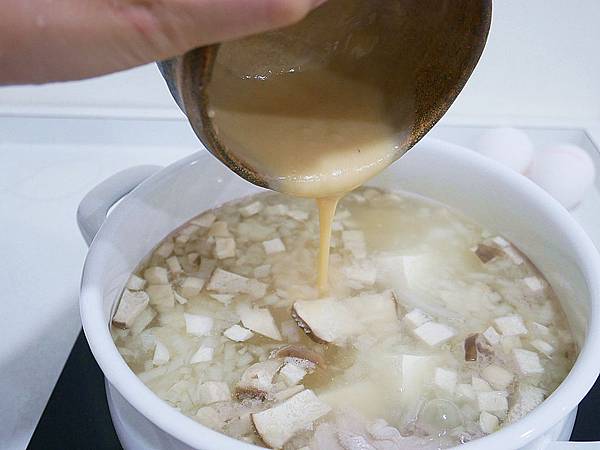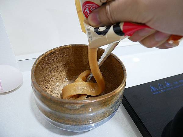 將味噌拌一點水攪散,這樣倒進去比較方便