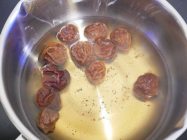 把甜話梅汁煮滾後轉小火再多煮3分鐘,接著放在旁邊冷卻