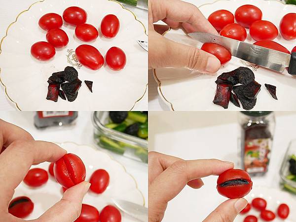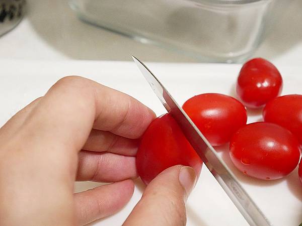 番茄一側切開約三分之一到一半即可放到旁邊待用