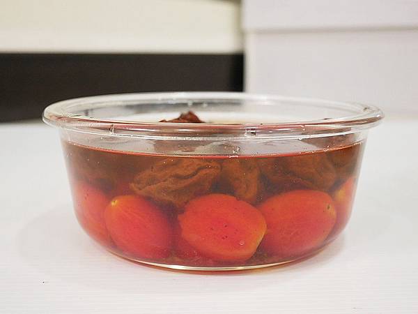 甜話梅汁一定要蓋過番茄材會每一顆都均勻入味喔!! 梅子也一起下更出味