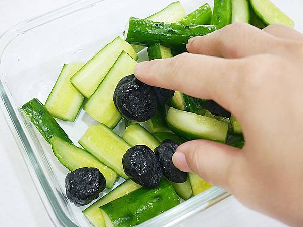 黃瓜取出後將容器內的水倒掉,並用開水洗兩次,最後記得瀝乾