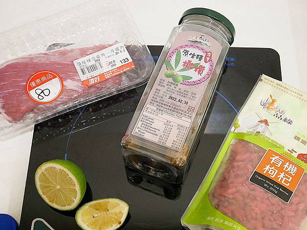橄欖、豬肉、枸杞、檸檬(可省略)