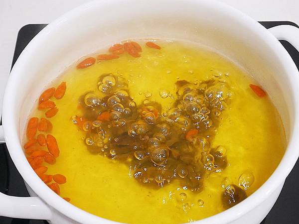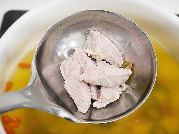 等水滾就可以放入枸杞,再滾五分鐘就能放入肉塊