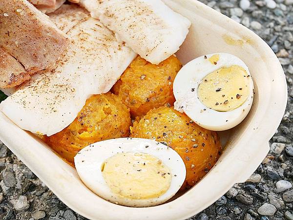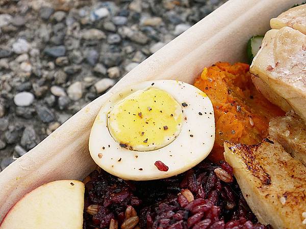 餐盒裡面的蛋是水煮過後再灑上調味鹽,口感滿Q彈