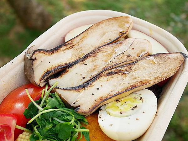 裡面的主食是超厚的煎杏鮑菇,口感很有嚼勁QQ的滿多汁
