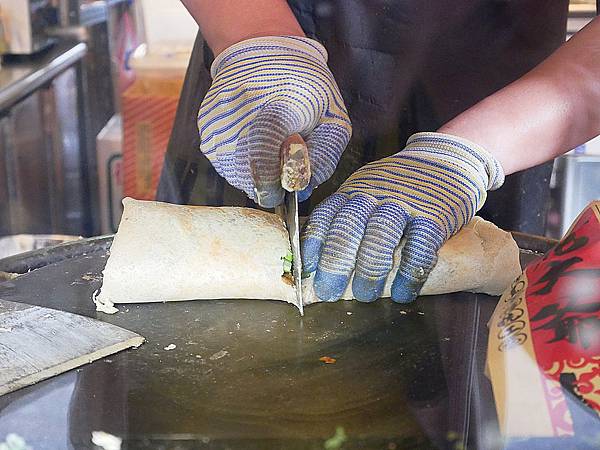 毎條煎餅果子都會對切,半份的SIZE約是整個手掌的長度,是不是光看就覺得份量十足
